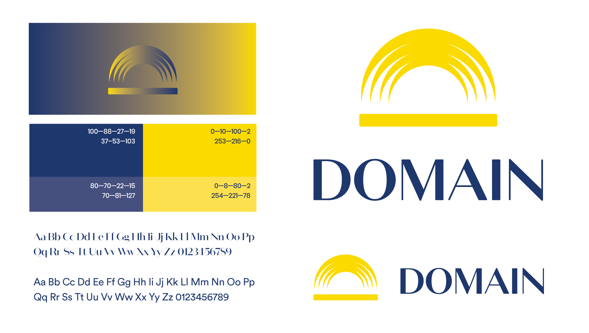 Identity / logo and elements for Domain by Brookfield Properties, a resort style apartment community in Orlando, Florida