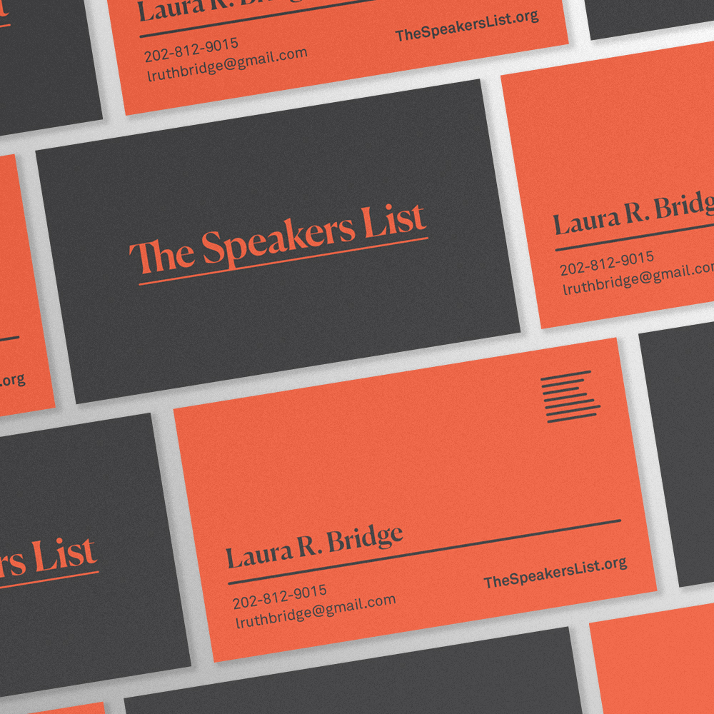 I created an authoritative logo complimented by a minimal mark evoking a list and the letter “S”, and utilized an energetic and attention-grabbing bright red-orange in the palette.